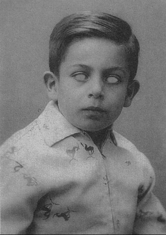 La pregunta es aquí si el texto se corresponde con la manipulación iconográfica de los ojos. El niño, así minusvalido, habla en el poema de su imposibilidad de alcanzar luz y resplandor, de su acción de romper lo que sus manos alcanzan, de su chillido. El final con la luminosa y también ciega luna riendo acentúa un matiz demoníaco en la situación. Poema y manipulación están operando críticamente contra el script subyacente de la fotografía. Poema y manipulación suprimen ingenuidad y buena consciencia y apelan a una estética negativa que choca al lector de foto y texto poético.
