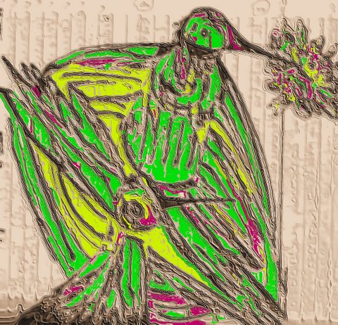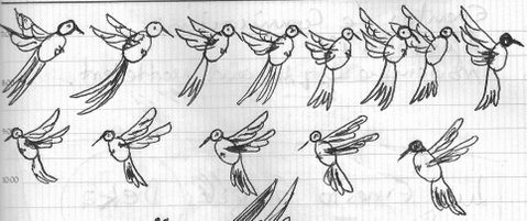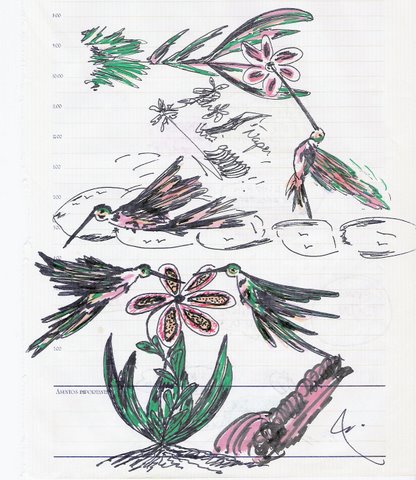 El Colibrí sueña con poseer flores abiertas y jugosas. Vagabundo en una ciudad de pocos jardines danza sin vergüenza alguna, chupa el néctar como la llama el aire y su veloz flecha succiona el silencio. Picando como si fuera a morir lo agarra la madrugada, mas resiste a su luz convertido en mosquito; su boca ensangrentada y sus alas ya sin vigor se resarcen en las matas del amor.