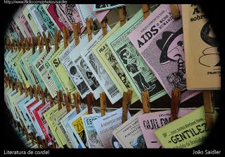 . Foto de uma banca de cordéis no Centro de Tradições Nordestinas, vulgarmente conhecida como Feira de São Cristóvão, no Rio de Janeiro.