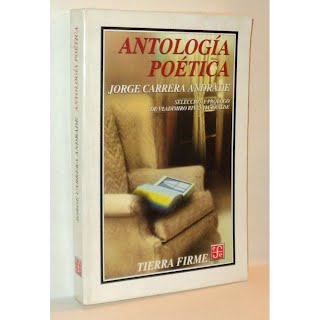 Jorge Carrera Andrade(Quito, 1903-1978) Poeta, ensayista, traductor y diplomático. Su obra está traducida a varios idiomas. Publicó en verso: Estanque inefable (1923); La guirnalda del silencio (1926); Boletines de mar y tierra (Barcelona, 1930); Rol de la manzana -1926/1929 (Madrid, 1935); El tiempo manual (Madrid, 1935); Biografía para uso de los pájaros (París, 1937); La hora de las ventanas iluminadas (Santiago de Chile, 1937); Microgramas (Tokio, 1940); País secreto (Tokio, 1940); Registro del mundo. Antología poética. 1922-1939 (1940); Canto al puente de Oakland (Stanfor, 1941); Poesías escogidas (Caracas, 1945); Lugar de origen (Caracas, 1945); Canto a las fortalezas volantes. Cuaderno del paracaidista (Caracas, 1945); El visitante de niebla y otros poemas (1945); Aquí yace la espuma (París, 1950); Familia de la noche (París, 1953); Edades poéticas -1922/1956- (1958); Moneda del forastero (Dijon, 1958); Hombre planetario (Bogotá, 1963); Mi vida en poemas (Caracas, 1962); Los primeros poemas de Jorge Carrera Andrade (Caracas, 1962); Floresta de los guacamayos (Managua, 1964); Crónica de las indias (París, 1965); Poesía última: Hombre planetario. Floresta de los guacamayos. Crónica de las Indias. El alba llama a la puerta (New York, 1968); Prosa y poesía de Jorge Carrera Andrade (Holanda, 1968); Libro del destierro (Dakar, 1970); Misterios naturales (1972); Vocación terrena (1972); Obra poética completa (1976); Jorge Carrera Andrade: los caminos de un poeta -obra poética completa- (Quito, 1980); Antología poética (Quito, 1990). Además los libros de Ensayo: Cartas de un emigrado (Quito, 1933); Latitudes (Quito, 1934); Guía de la joven poesía ecuatoriana (Tokio, 1939); Indice de poetas franceses modernos (Santiago de Chile, 1940); Ecuador Sheds its Blood for Democracy and Security of Wstern Hemisphere (San Francisco, 1941); Mirador terrestre. La República del Ecuador encrucijada cultural de América (New York, 1943); Rostros y climas (París, 1948); La tierra siempre verde -El Ecuador visto por los cronistas de Indias, los corsarios y los viajeros ilustres- (París, 1955); El camino del sol -Historia de un reino desaparecido- (Quito, 1959); Galería de místicos e insurgentes -La vida intelectual del Ecuador durante cuatro siglos: 1555-1955- (Quito, 1959); Poesía francesa contemporánea (Quito, 1961); Viaje por países y libros (Quito, 1961); Presencia del Ecuador en Venezuela (Quito, 1963); El fabuloso reino de Quito -Historia del Ecuador desde sus orígenes más remotos hasta la conquista española- (Quito, 1963); Carrera Andrade en la Academia -dos discursos- (Quito, 1963); Radiografía de la cultura ecuatoriana (Managua, 1964); Interpretación de Rubén Darío (Managua, 1964); Retrato cultural del Ecuador (París, 1965); Interpretaciones hispanoamericanas (Quito, 1967); Las relaciones culturales entre el Ecuador y Francia (Quito, 1967); Reflexiones sobre la poesía hispanoamericana (Quito, 1987). Memorias: El volcán y el colibrí (México, 1970).