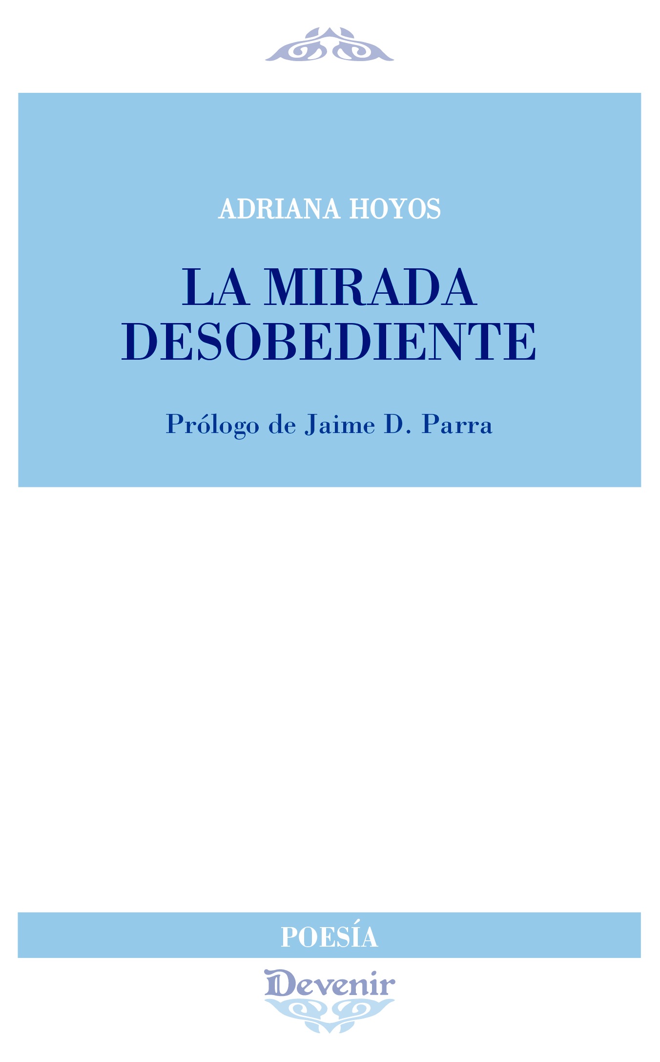 De Entre la palabra y el olvido, libro La mirada desobediente. Editorial Devenir, Madrid 2013. | ADRIANA HOYOS Poeta colombo- española, nacida en Bogotá en y radicada en España desde 1978. Se instruye desde temprana edad en el arte del violín, guiada por su padre, músico fundador de la Orquesta Filarmónica de Bogotá. Con once años se traslada a Barcelona. La pasión por la literatura se inicia en su adolescencia con unas primeras lecturas reveladoras Lorca, Gimferrer, Mallarmé, Eliot. A los dieciocho años vuelve a Bogotá, forma parte de la Orquesta Sinfónica Juvenil. Realiza estudios de literatura en la Pontificia Universidad Javeriana. Posteriormente retorna a España, donde estudia Dirección de Cine en Barcelona. Dirige varios cortometrajes, seleccionados en festivales nacionales e internacionales. En el año dos mil se instala en Madrid, funda la productora La Huella del Gato , dedicada al desarrollo de proyectos cinematográficos y de publicidad. Dirige desde sus inicios, en el año dos mil, el Festival de Cine Visual Cine Novísimo. Es directora de comunicación de la Asociación de Mujeres Cineastas y de Medios Audiovisuales de España (CIMA) y productora ejecutiva del programa de impulsos cinematográficos Cima Mentoring. Ha publicado: La torre sumergida, March Editor, Barcelona 2009. La mirada desobediente, Devenir Editores, Madrid 2013. Del Otro lado, Huerga y Fierro Editores; Madrid 2017. Textos suyos han aparecido en revistas de América Latina y Europa. Sus poemas han sido traducidos al italiano por Erminio Corti, Alessandro Prusso. Al inglés por Jonathan Boulting. Al albanés por Edita Kuci Ukaj. Ha participado en festivales de poesía en España, Venecia y Macedonia. Sus textos aparecen en las antologías del Festival Ditët e Naimit, Macedonia, 2014 y 2015, traducidos al albanés por Edita Kuci Ukaj y por la poeta Manjola Brahaj. Antología Escritores recónditos, Barcelona 2016 y en la Antología Voix Vives, Toledo 2016. Editorial Huerga y Fierro. En 2015 queda finalista en II Premio Internacional de Poesía Jovellanos, con el poema in memoriam Anna Ajmátova “A una dama de Tsárskoye Seló” publicado en el libro: El mejor poema del mundo, 2015 de Ediciones Nobel. En 2016 Participa en Voix Vives de Mediterráneo, Toledo y se traduce al italiano su libro La mirada desobediente por Alessandro Prusso.
