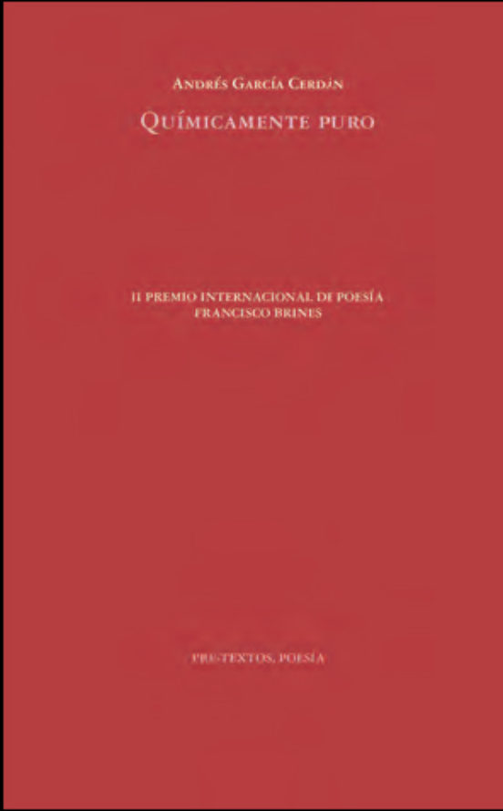 El profesor Andrés García Cerdán, poeta acreditado con numerosos premios ha ganado el segundo premio internacional de poesía Francisco Brines con su libro Químicamente puro.