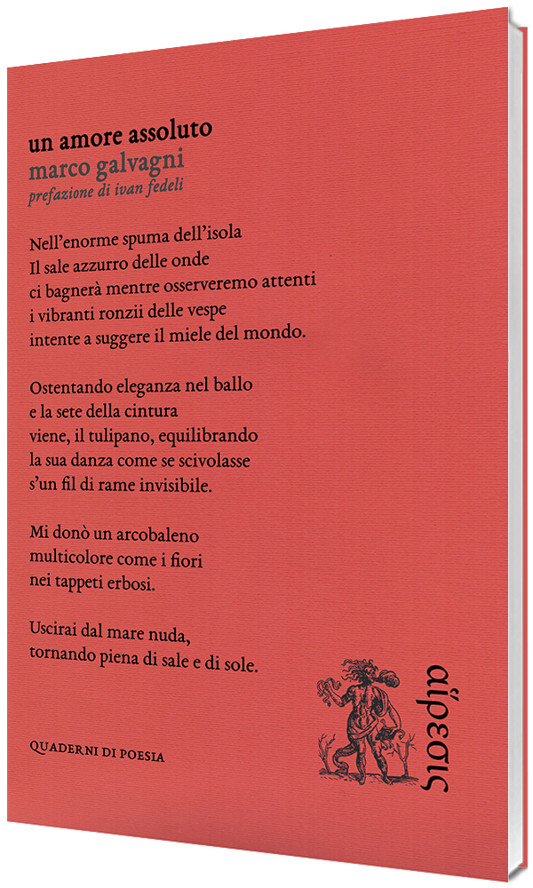 Un amore assoluto de Marco Galvagni (Eretica Edizioni, 2023 pp. 60 € 15,00) contiene el corazón privilegiado y espontáneo de las emociones, modula el desvelamiento incondicional de la poesía amorosa más allá del velo palpitante de las ilusiones. Marco Galvagni asocia la armonía del instinto a la identidad del espíritu, acoge la energía natural del principio oscilante del amor, la inclinación auténtica y sincera de la complicidad, en la experiencia adorante del encuentro, en la implicación apasionada de las proyecciones afectivas, irradia consagración al prolongado destello del enamoramiento. Refleja, en la lánguida solemnidad de los versos, la manifestación totalizadora de los deseos, sella, a través de la comprensión del placer, el éxtasis seductor de los ojos, la atracción generosa de las sonrisas, convierte el horizonte hechizante de la vida en la inspiración de la elegía destinada. a la mujer que ama. La poesía de Marco Galvagni rinde homenaje a la sabiduría innata del ars Amatoria, ofrece la cualidad sensible de la escucha, preserva la razón de la conquista y fortalece la atención cariñosa y amorosa del vínculo, persigue el encanto acariciante de la relación, traduciendo la suntuosa esperanza de su propia experiencia personal. El sentimiento de amor se describe como la magnificencia celebratoria de la cercanía física, sostenida por la embriaguez del cortejo, develada como fundamento revelador, embriagadora y participación compartida. Marco Galvagni amplía sus versos en la devoción de un vínculo que une cuerpo y alma, renueva el vitalismo privado a partir de la culta combinación de componentes estéticos, manifiesta su entusiasmo en las sugerentes expresiones de la naturaleza, en las fascinantes declaraciones de las estaciones, en la tentación halagadora de lugares y en la llamada audaz e infinita del universo dominado por la pasión. Elogia la naturaleza romántica de los sueños, la noble capacidad de despertar la intensidad de las promesas, las persuasiones devotas y sensuales. Los textos concentran magistralmente el influjo de los sentidos, expuestos como herramienta cognitiva para sustentar la realidad y comprenderla, declinan la refinada belleza de un evocado y anhelado ideal femenino, refuerzan la destreza sentimental con la exaltación intrínseca de la voluptuosidad, incitan a contener cada la sensación como oportunidad sublime de identificación y conjunción con el todo, como propensión ilimitada a abandonarse a la magia celebratoria, recíproca, de todo abandono íntimo. El dominio efectivo del medio expresivo en los poemas de Marco Galvagni absorbe la dirección sensible de las palabras y consume el misterioso sedimento oscuro del asombro y el asombro. El poeta, ávido de poseer los halagos invisibles e impalpables del amor, excava en la palabra el signo perfecto de la pertenencia, la correspondencia secreta compartida en la difusión de las complicidades sorprendentes y tentadoras, interpreta la complacencia indefinible y la elusividad del presentimiento, siente el miedo inefable a la espera, el éxtasis quimérico. Persigue la imagen inagotable del idilio, el esquivo laberinto de los episodios memorables, la adivinación del tiempo, los cruces inclinados de las citas. Un amore assoluto otorga a su lectura la confesión sensibilísima de la voluntad de amar y ser amado, la explosión de pánico del mundo interior, la alegría de vivir.