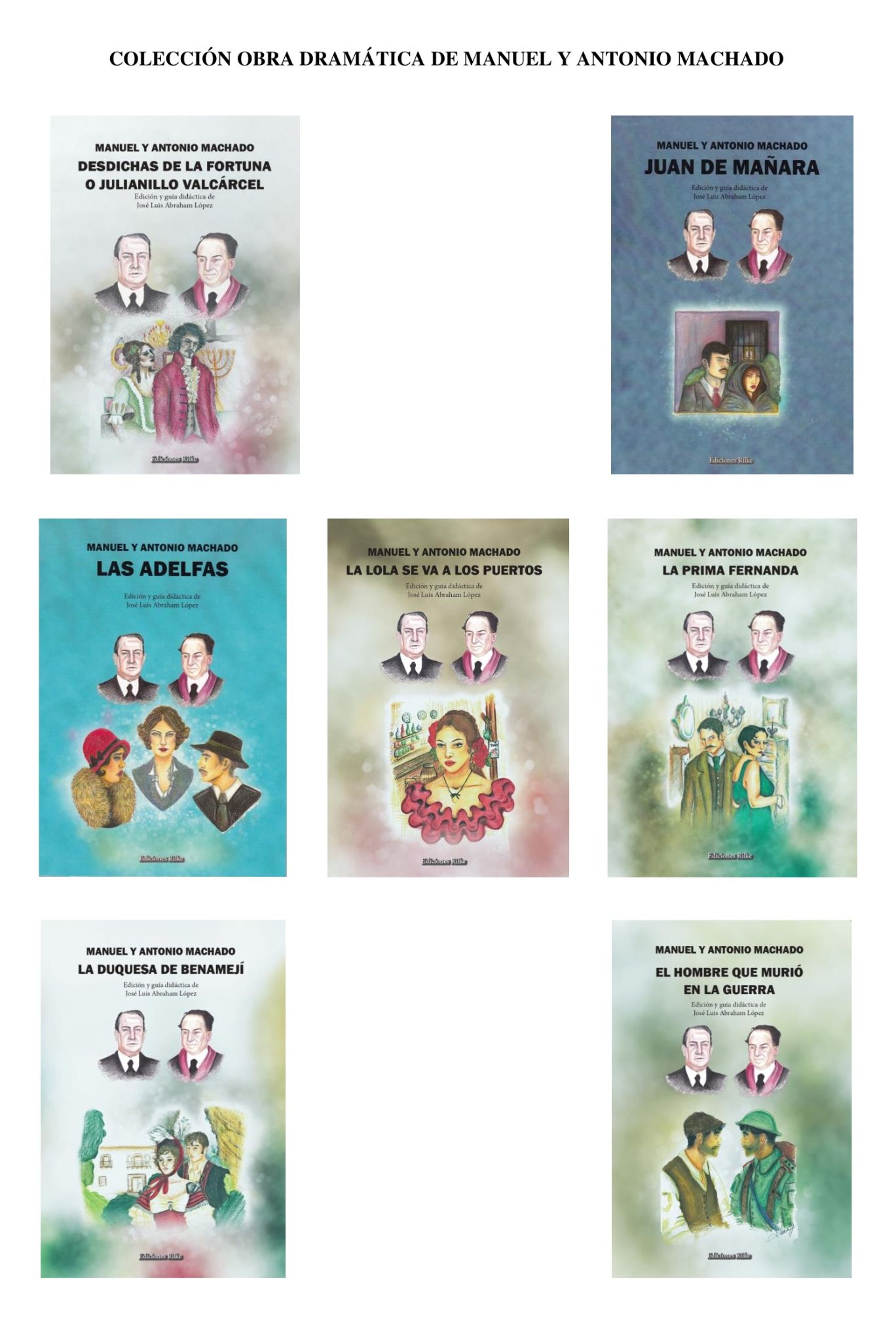 Aunque las obras dramáticas de los hermanos Machado, presentadas entre 1926 y 1941, no son ampliamente reconocidas en el teatro contemporáneo, han suscitado un creciente interés en el ámbito académico, impulsando ensayos, estudios filológicos y tesis doctorales. Desde 2021, la editorial Rilke ha contribuido a su revalorización mediante la publicación de una colección didáctica destinada a ser utilizada en las aulas. La característica distintiva de esta colección es la inclusión de guías didácticas en cada uno de los siete volúmenes. Además, cada edición ofrece un estudio introductorio y un aparato crítico con notas a pie de página que explican, contextualizan e interpretan las obras de los dramaturgos sevillanos.