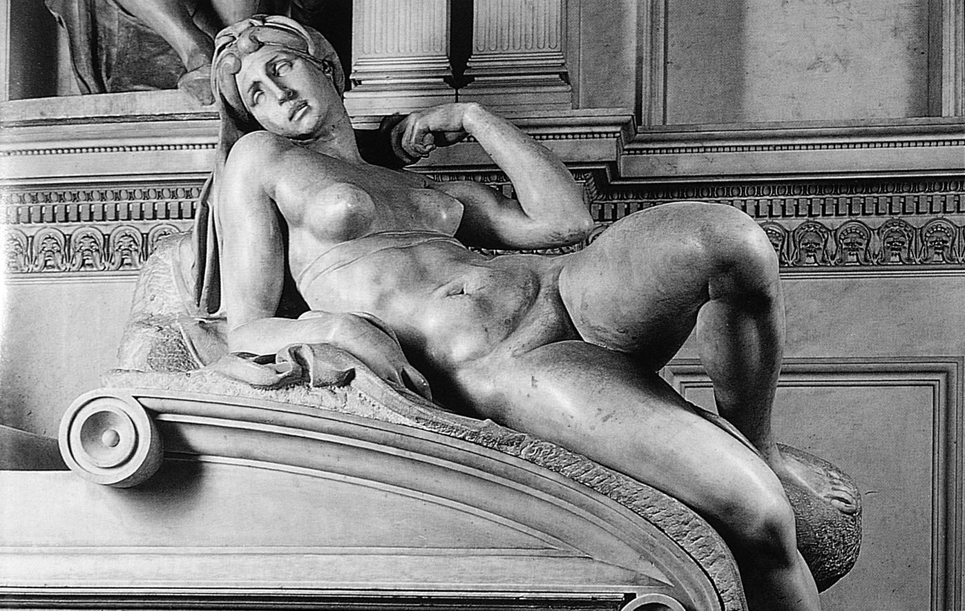 En el siglo XVI, en la Sacristía Nueva de las Capillas Mediceas, en Florencia, se instalaron los sepulcros de la familia Médicis, obra del gran escultor, arquitecto, pintor y poeta Miguel Ángel Buonarotti (1475 - 1564). En dos de ellos velan dos estatuas de hombre y mujer, en desnudo, en cada una. En la de Julián, duque de Nemours Día y Noche, y en la de Lorenzo, duque de Urbino Crepúsculo y Aurora (obras de 1520). En la figura de mujer de Día y Noche es evidente, por su superficie irregular, un cáncer de mama localmente avanzado y además bilateral. Basta para comprenderlo observar y comparar las mamas de esta mujer con los de la figura femenina de Crepúsculo y Aurora que aparecen lisas, perfectas, normales.